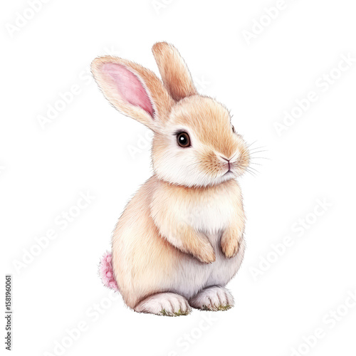 Obraz premium Adorable realistic bunny rabbit with soft fur large ears and curious expression standing upright isolated on white background