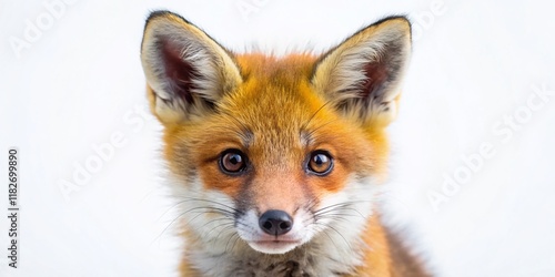 Fototapeta premium Adorable Red Fox Kit Macro Photography - Isolated White Background