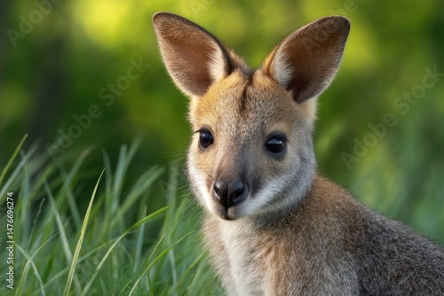 © Dzikrul Husnani, Fototapeta premium Adorable Red-Necked Wallaby Joey: Serene Nature Portrait
