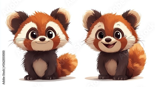 © Wirom, Fototapeta premium Adorable Red Panda Pair: A Digital Illustration