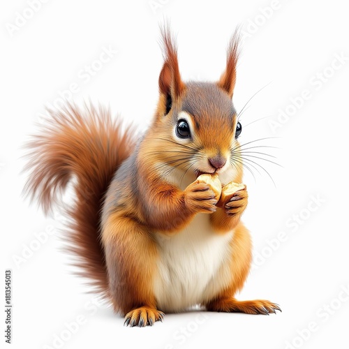 © Devian Art, Fototapeta premium Adorable red squirrel eating a nut while sitting isolated on white background