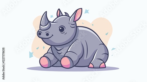 Fototapeta premium Adorable Rhino Sitting Flat Vector Illustration with Playful Expression