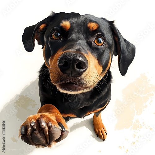 © Ardhana, Obraz premium Adorable Rottweiler Puppy Reaching Up With Paw