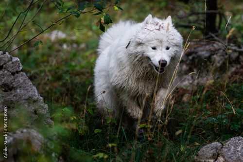 © Frane, Obraz premium Adorable samoyed in the mountain