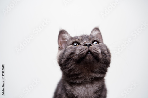 Fototapeta premium Adorable scottish black tabby kitten on white background.