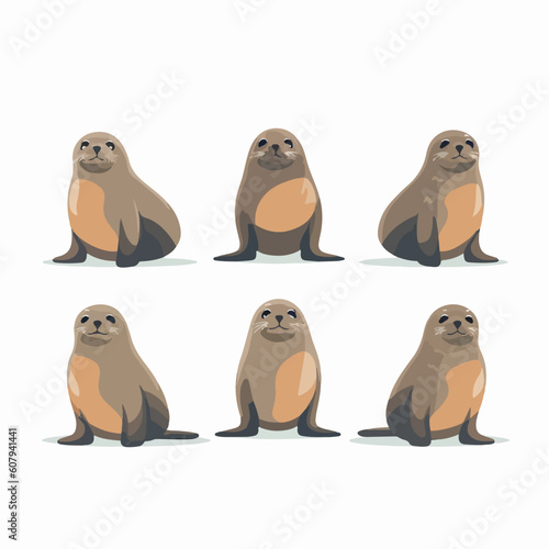 © Llama-World-studio, Fototapeta premium Adorable seal illustrations showcasing a range of cute positions.