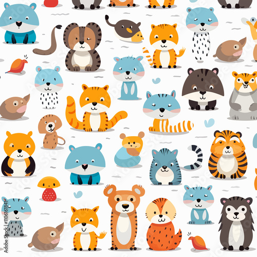 Obraz premium Adorable Seamless Pattern with Cute Animals Illustration