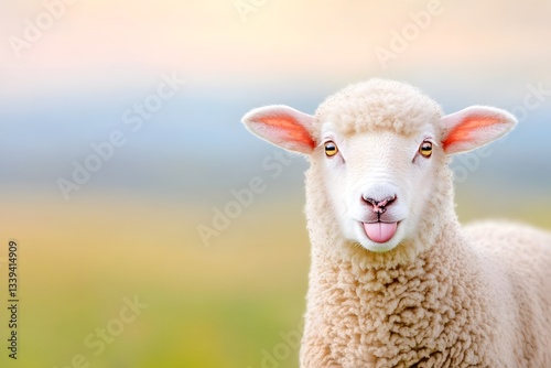 © Downloads, Fototapeta premium Adorable Sheep Selfie with Tongue Hanging Out in Countryside Field
