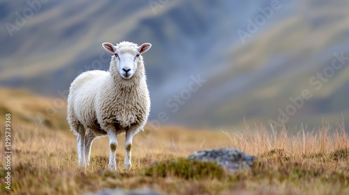 Fototapeta premium Adorable Sheep Standing Gracefully in a Serene Natural Landscape with Soft...