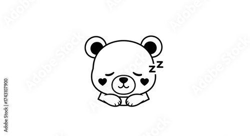 © Tayab, Fototapeta premium Adorable sleeping bear cub with hearts on cheeks, peaceful slumber