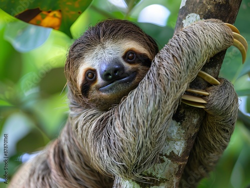 © Cris, Fototapeta premium Adorable Sloth Clinging to a Tree in a Lush Forest