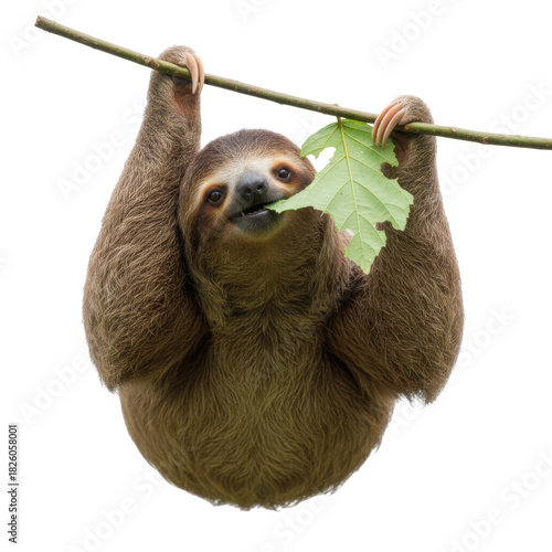 © Gustav, Obraz premium Adorable sloth hanging from a branch and eating a green leaf