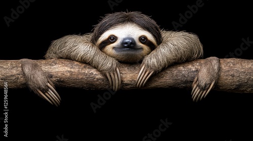 Fototapeta premium Adorable Sloth Hanging on a Branch with its Claws and Smiling
