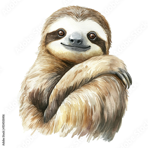© Tohamina, Naklejka premium Adorable Sloth Watercolor Painting