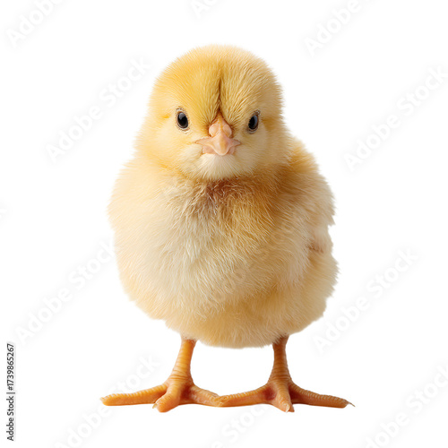 © Emery, Fototapeta premium Adorable Small Chick Posing on Clean White Surface