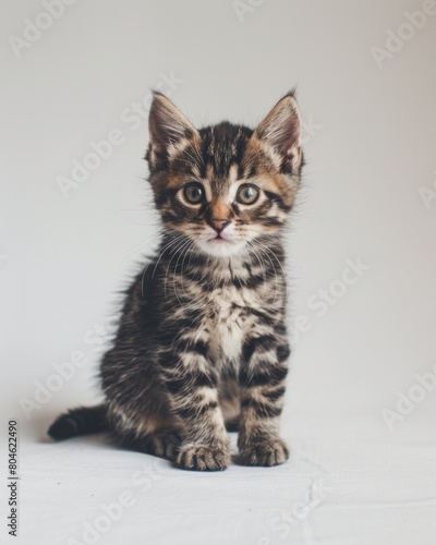 Obraz premium Adorable small kitten sitting elegantly on a pristine white surface