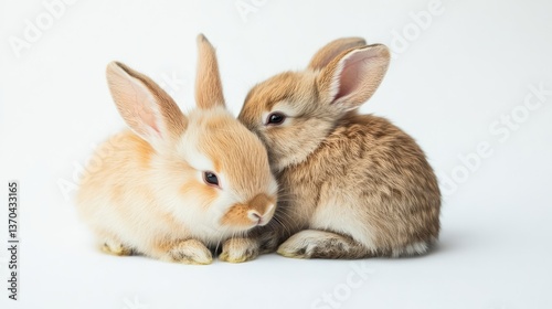 © konsak, Obraz premium Adorable Small Rabbits Snuggling