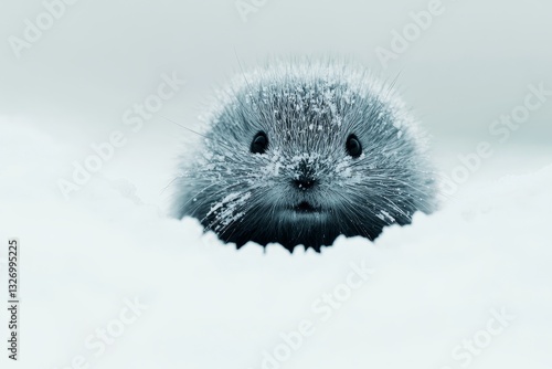 Obraz premium Adorable small winter mole peeking from fresh snow with tiny face covered in frost
