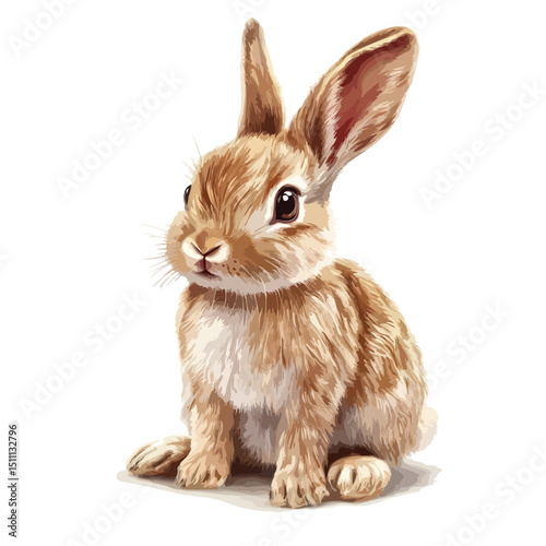 © Touch, Obraz premium Adorable Smiling Baby Rabbit Sitting on a White Background - High-Quality Vector Illustration