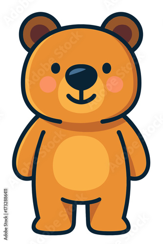 © Mr. Designer, Fototapeta premium Adorable Smiling Orange Cartoon Teddy Bear Character Illustration, a Cute and Friendly Digital Art Graphic for Kids, Babies, and Nursery Decor, Perfect for Playful Designs, Sweet Childhood Themes, and