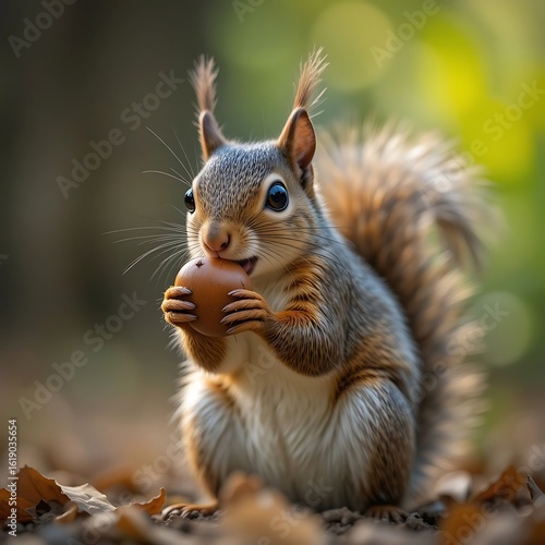 Obraz premium Adorable squirrel enjoying a nut