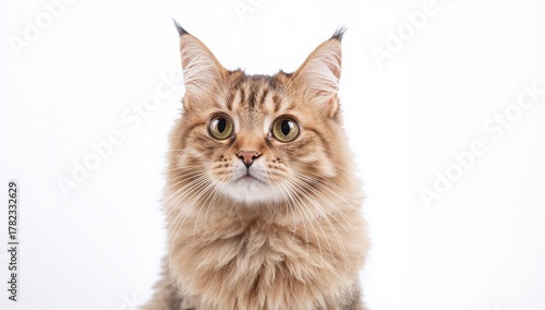 © Giovanni, Obraz premium Adorable stray kitten on a white backdrop, emphasizing isolation
