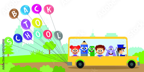 Obraz premium Adorable students take school bus to school
