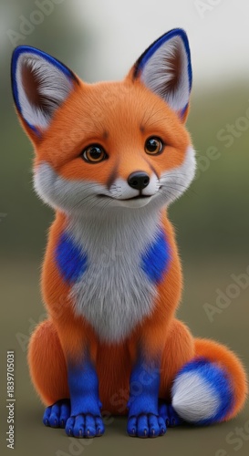 Obraz premium Adorable stylized young canine creature features bright orange fur accented with striking blue markings