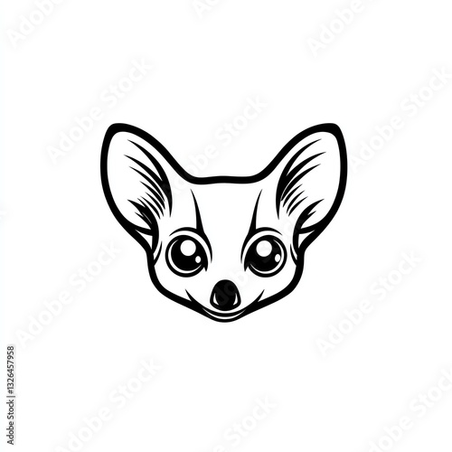 © Priyanut, Obraz premium Adorable Sugar Glider Face, Minimalist Black Line Art Design. A captivating and cute animal portrait.