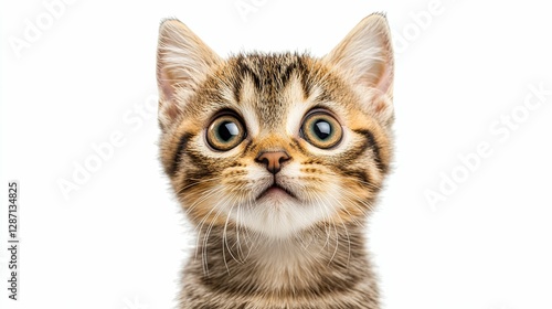 © Arieswanto, Obraz premium Adorable Tabby Kitten With Wide Eyes Looking Up