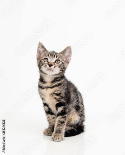 Fototapeta premium Adorable Tabby Striped Young Kitten on White Background