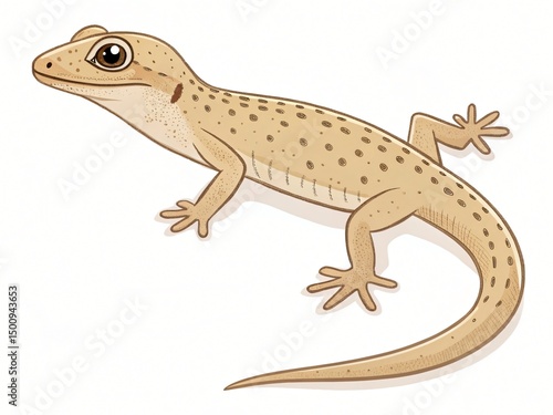 © WisChi, Naklejka premium Adorable Tan Gecko Lizard Illustration Reptile Cartoon Scaly Skin Cute Animal Wildlife Art