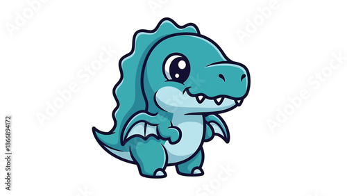 Fototapeta premium Adorable Teal Dragon Cartoon Character with Spiked Frill and Tiny Wings.