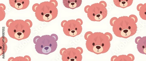 Fototapeta premium Adorable teddy bear head silhouettes repeat in a charming seamless pattern,...