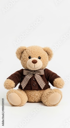 © marelia, Obraz premium Adorable Teddy Bear with Bow Tie in Studio Setting.