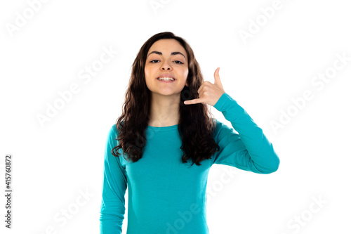 Fototapeta premium Adorable teenage girl with blue sweater