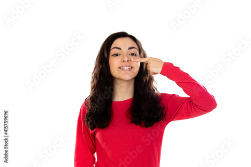 © Gelpi, Fototapeta premium Adorable teenage girl with red sweater