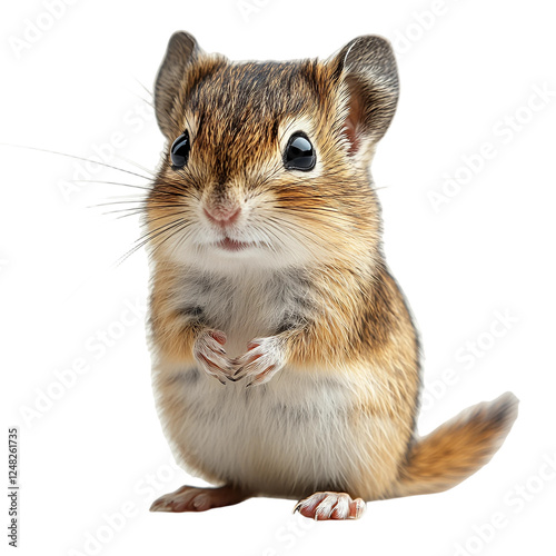Fototapeta premium Adorable Tiny Chipmunk Portrait Small Rodent Closeup Fluffy Fur Wildlife...