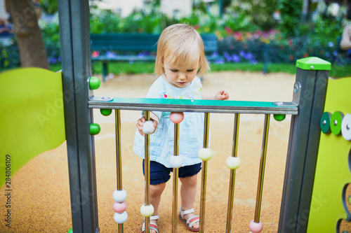© Ekaterina Pokrovsky, Obraz premium Adorable toddler girl having fun on playground