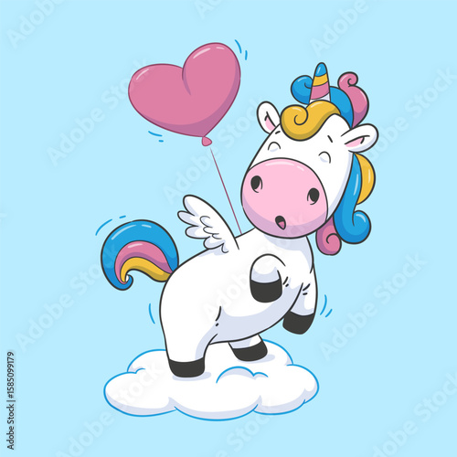 © Ruddy, Obraz premium Adorable unicorn with a heart balloon