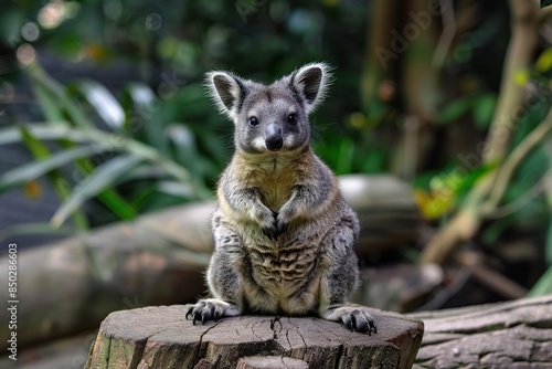 © martgraphy, Obraz premium Adorable wallaby sitting on a log