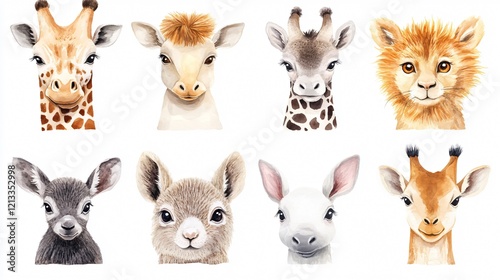 © Jos, Fototapeta premium Adorable Watercolor Animals Nursery Art Set for Decor - Whimsical Clipart Collection for Kids Room