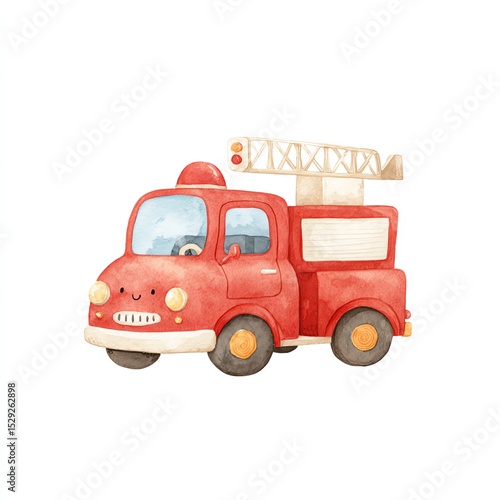 Obraz premium Adorable Watercolor Firetruck Illustration, Happy and Cheerful Design, Perfect for Kids