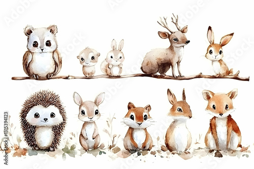 © Siasart Studio, Naklejka premium Adorable Watercolor Forest Animals