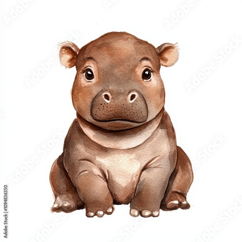 Naklejka premium Adorable Watercolor Hippo