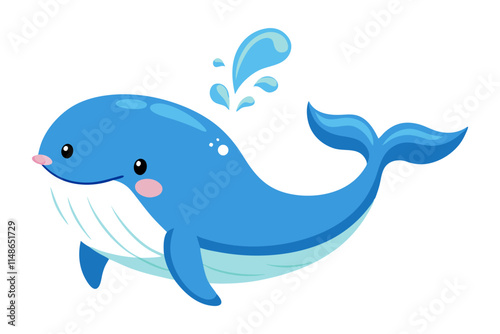 © VECTOR BUNDLE, Naklejka premium Adorable watercolor vector of a cartoon Beluga whale, isolated on white background. High-quality marine animal illustration for ocean-themed designs, kids' projects, and creative artworks