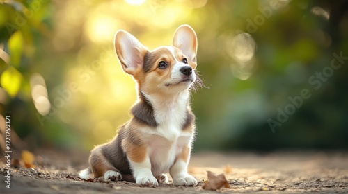 Fototapeta premium Adorable Welsh Corgi Puppy in Golden Sunlight