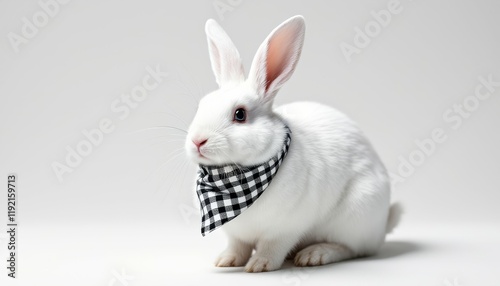 © hadi, Obraz premium Adorable White Bunny in a Chic Black and White Gingham Bandana