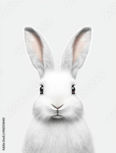 © Flowaiart, Obraz premium Adorable White Bunny on Clean Background