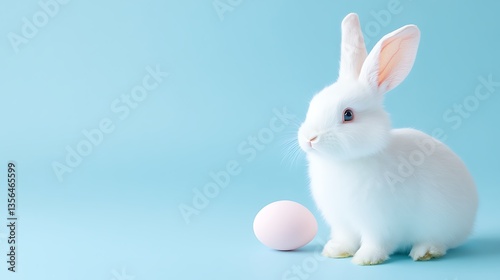 © Kurang, Obraz premium Adorable white bunny with pink Easter egg.